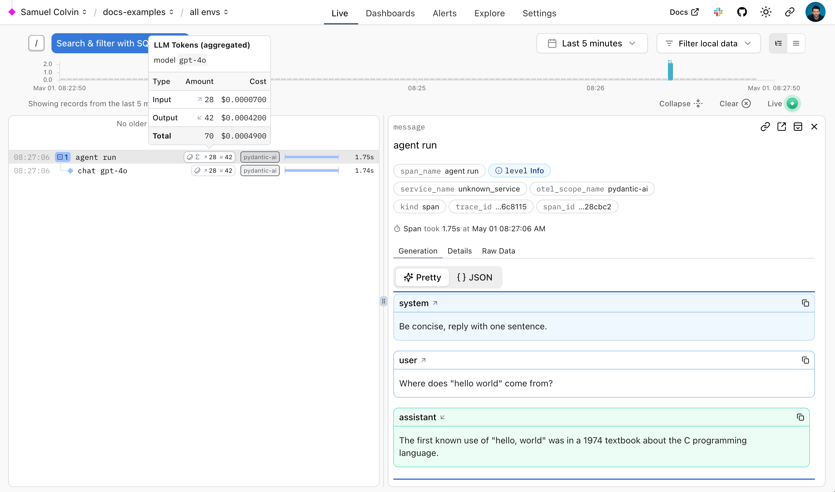 agent = Agent('gpt-4o', instrument=instrumentation_settings)